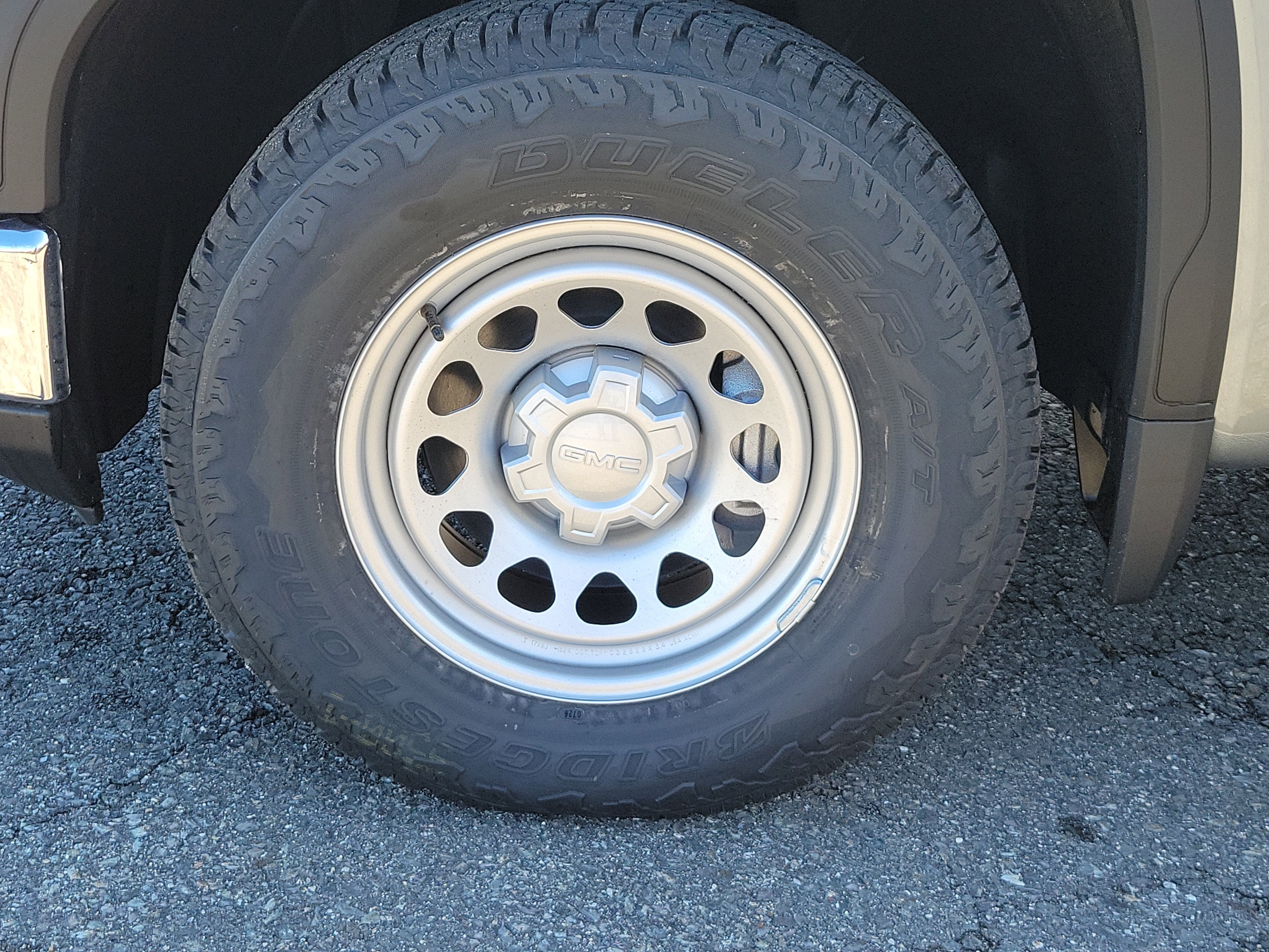 Windows, power front, drivers express up/down, Window, power front, passenger express down, Wi-Fi Hotspot capable (Terms and limitations apply. See onstar.com or dealer for details.), Wheels, 17" x 8" (43.2 cm x 20.3 cm) painted steel, Silver, Wheel, 17" x 8" (43.2 cm x 20.3 cm) full-size, steel spare, USB Ports, 2, Charge/Data ports located on instrument panel, Transmission, 8-speed automatic, (Column shifter) electronically controlled with overdrive and tow/haul mode. Includes Cruise Grade Braking and Powertrain Grade Braking (Standard and only available with (L3B) TurboMax engine.), Transfer case, single speed, electronic Autotrac with push button control (4WD models only), Tires, 255/70R17 all-season, blackwall, Tire, spare 255/70R17 all-season, blackwall (Included with (QBN) 255/70R17 all-season, blackwall tires.).