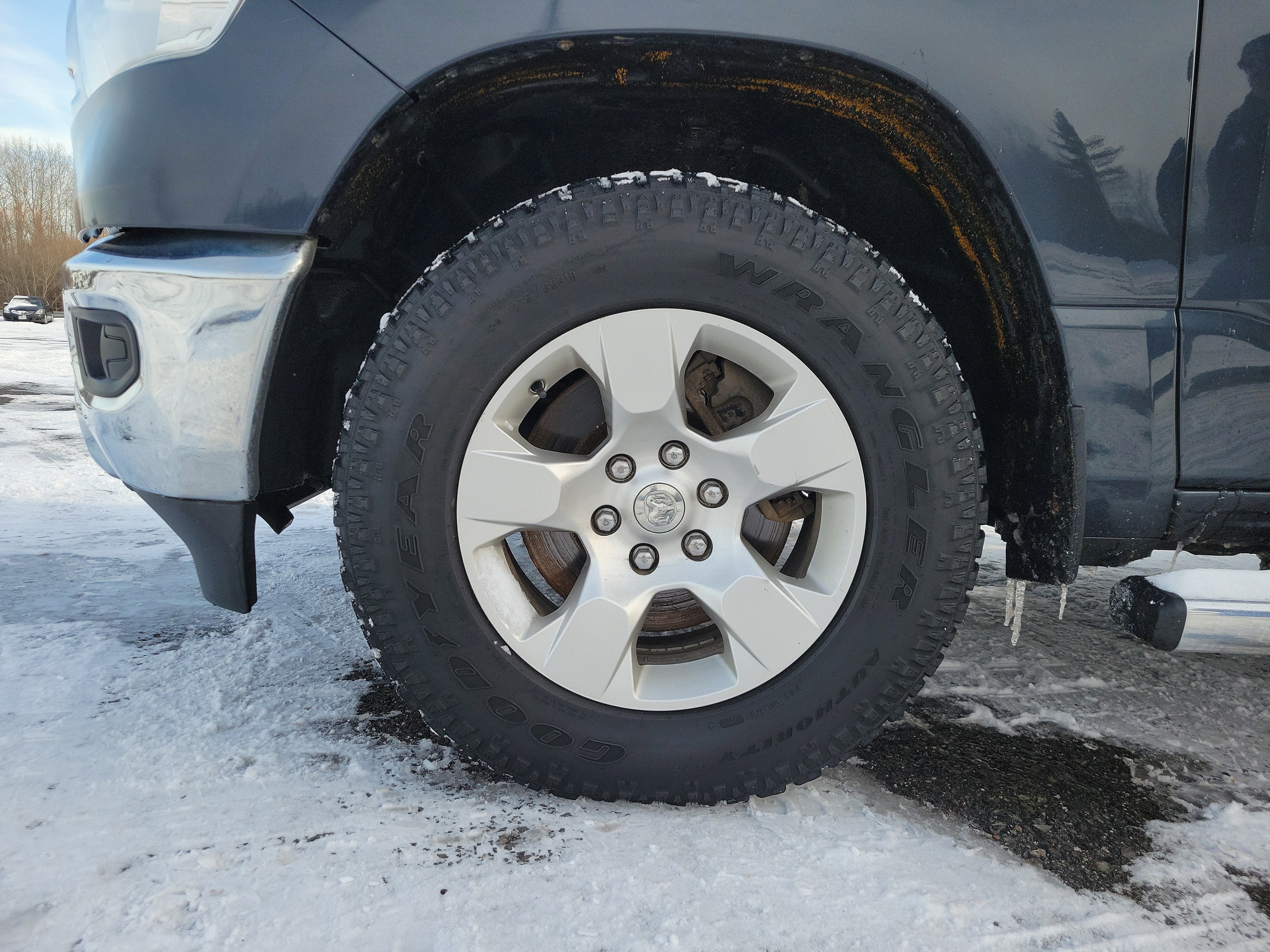 Maximum steel metallic finish pairs with chrome bumpers and 18 inch alloy wheels for a confident, work-ready stance. Wheel to wheel side steps add easy access to the crew cab, while the Big Horn/Lone Star package signals serious capability and style on every job site.