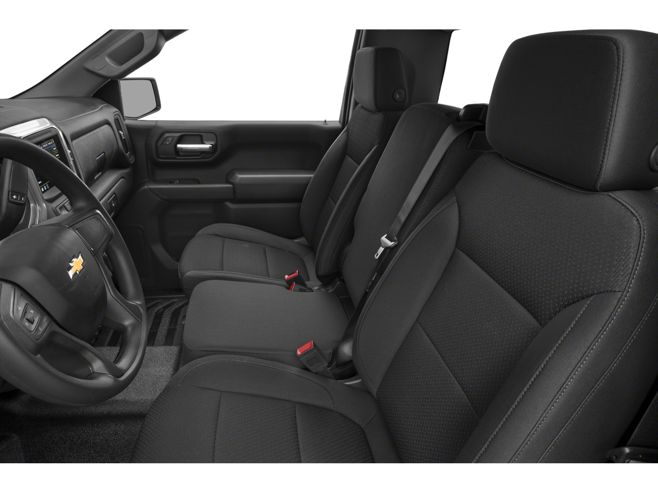 Inside, the 40/20/40 split-bench seat and rubberized-vinyl floor covering make this cabin easy to clean after dusty sites or muddy hauls.
