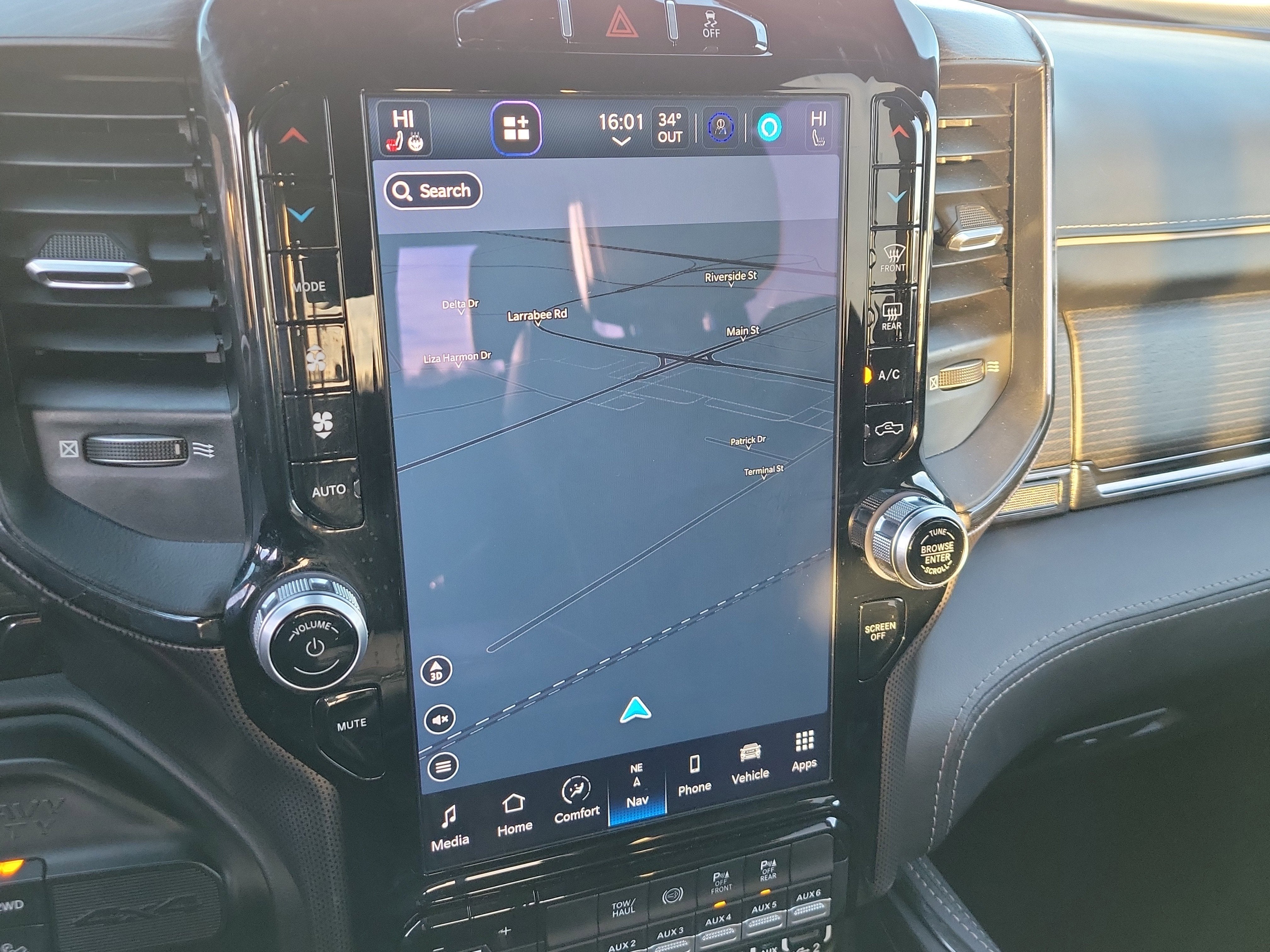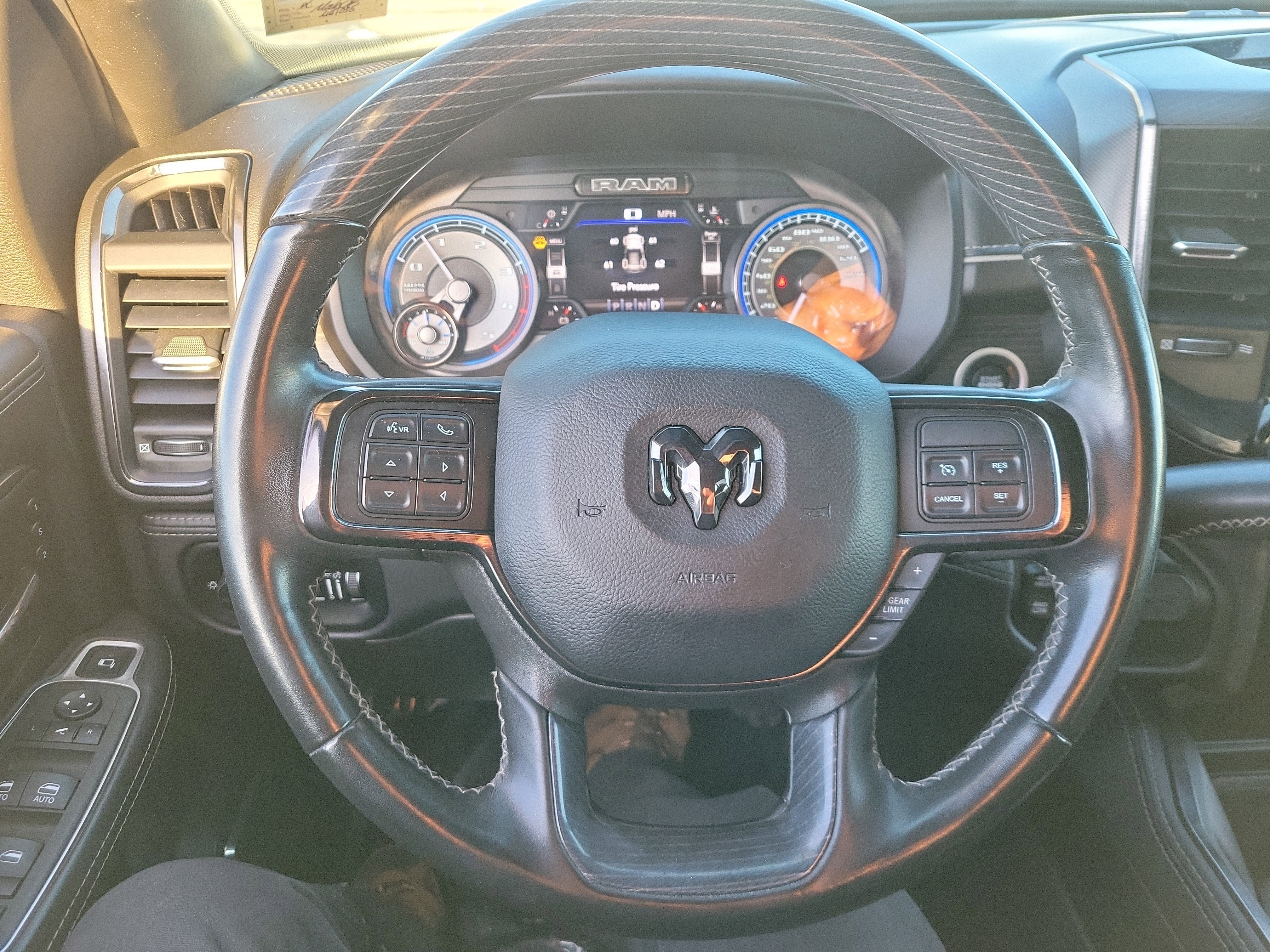 Inside, it is all Limited luxury. Limited Leather Bucket Seats, Heated and Ventilated Front Seats, Heated Rear Seats, and a Heated Leather Steering Wheel turn long days into first class trips. Genuine Wood Inserts in the dash, doors, and console, plus Adjustable Pedals with Memory, Power Sunroof, and a 12-Inch Uconnect 5 Navigation Touchscreen remind you this truck lives at the top of the food chain.
