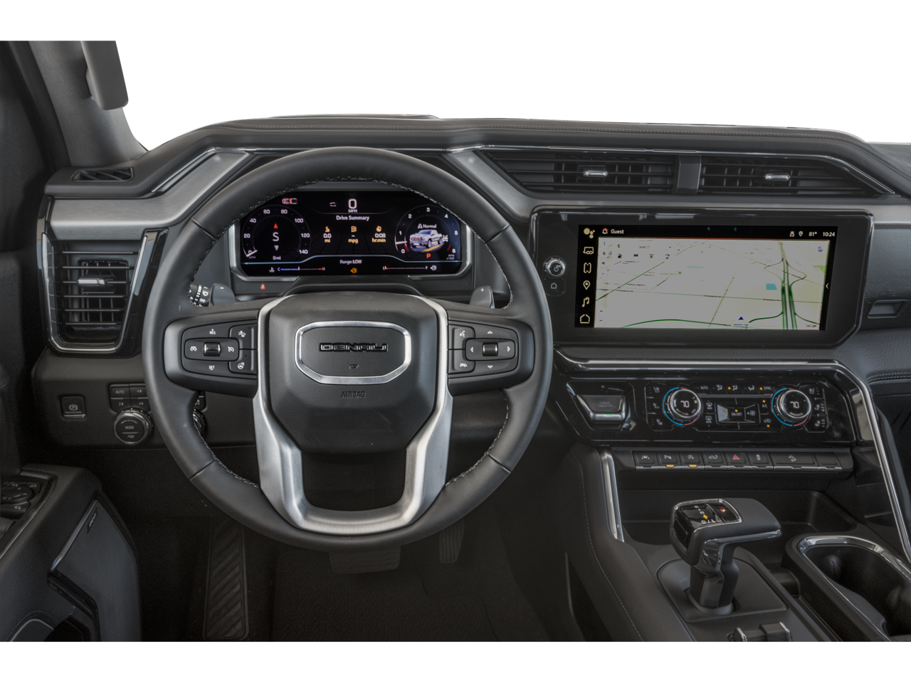 GMCs signature chrome Denali grille gleams like sculpture, framed by chrome recovery hooks and body-color bumpers that define intent. The MultiPro Tailgate with Step Lights transforms convenience into art. Front rain-sensing wipers, perimeter lighting, power sunroof every feature designed to make power feel polished.